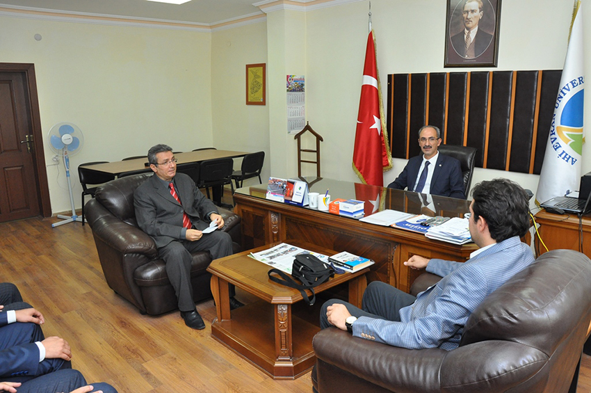 Rektör Karakaya, hayırseverlerle yaptığı görüşmenin ardından görevine yeni başlayan Mucur Kaymakamı Muhammet Önder’i makamında ziyaret ederek hayırlı olsun dileklerinde bulundu. Kaymakamlık ziyaretinin ardından Mucur Belediye Başkanı Ali Şahin’i makamında ziyaret eden Prof. Dr. Vatan Karakaya, 2015 – 2016 Eğitim – Öğretim yılında Mucur Meslek Yüksekokulunda eğitime başlayacak olan öğrencilerimiz için ilçeyle ilgili bilgiler aldı.