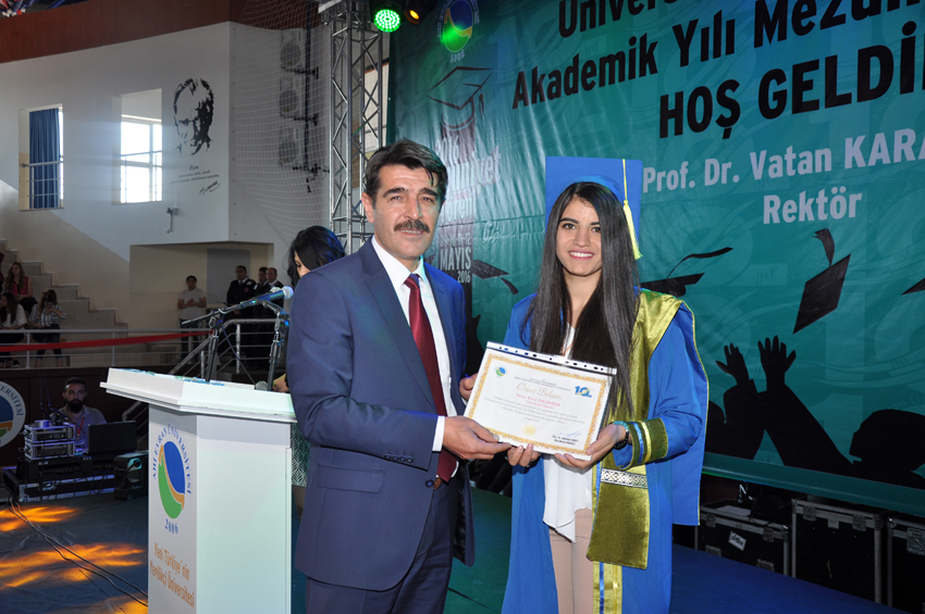 Dönem birincisi Elif Sacıcı dört yıl boyunca arkadaşları ve hocalarıyla sadece eğitim hayatıyla ilgili değil hayata dair birçok şey paylaştıklarını ifade ederek kendilerinin yetişmesinde emeği geçen herkese teşekkür etti.