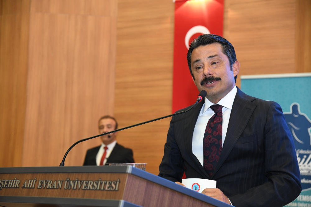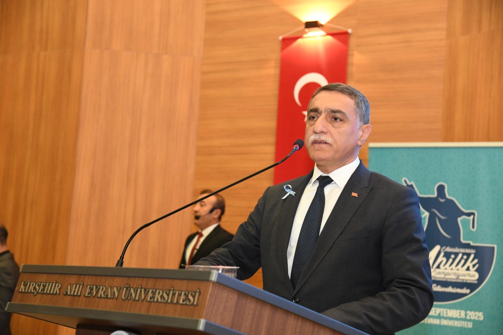 Ahiliği aslına uygun şekilde muhafaza etmeyi ve gelecek nesillere aktarmayı Ahi Evran-ı Veli’nin adını taşıyan bir üniversite olarak asli vazifeleri gördüklerini vurgulayan Prof. Dr. Mustafa Kasım Karahocagil, düzenledikleri sempozyum ve etkinliklerle gelecek nesillere kaynak eserler bırakmanın sevincini yaşadıklarını dile getirdi. Ahiliğin köken aldığı fütüvvet ruhundan gelen bilim, sanat ve ahlak anlayışı üzerine kurulmuş eşsiz bir değerler eğitimi modeli olduğunu anlatan Üniversitemiz Rektörü Prof. Dr. Mustafa Kasım Karahocagil, konuşmasına şöyle devam etti: “Ahi Evran-ı Veli; emek, ahlak, hak, adalet, merhamet gibi değerleri sabır, şükür ve kanaat zemininde eriterek oluşturduğu bu cevheri Anadolu'nun dört bir yanına sevgi, saygı, tevazu ve hayat boyu eğitim ile ilmek ilmek işlemiş ekonomik, sosyal ve siyasal hayatta makul bir denge tutturan, sivillerin kurduğu ve sürdürdüğü toplumsal bir düzen kurmuştur. Kısaca ‘Ahilik; dağıtan değil toparlayandır, yıkan değil yapandır.’ Yani Ahilik; bilginin hikmetle, üretimin kaliteyle, ticaretin Ahlakla buluştuğu adil bir toplumsal düzen kurulması demektir. Bu sebeple, Ahi Evran-ı Veli'nin adını taşıyan üniversitemiz eğitim öğretim ve toplumsal katkı çalışmalarını, Ahilik değerlerine yaslanarak yürütmeye çalışmaktadır.” Üniversitemiz bünyesinde “Ahilik Kültürü ve Meslek Ahlakı” dersinin tüm programlarda tüm öğrencilere okutulduğunu, oryantasyon haftasında Ahilik becerilerine vurgu yapıldığını, eğitim öğretim süresi boyunca yapılan sosyal sorumluluk ve toplumsal katkı projelerinin Sosyal Transkript Uygulaması ile taçlandırıldığını ve son olarak mezuniyet törenlerinde öğrencilere Ahilik Yemini yaptırıldığını kaydeden Rektör Karahocagil, bunu yanı sıra üniversitemizin öne çıktığı kalite çalışmalarını da “Ahiliğin İzinde Mükemmelliğe Yolculuk” mottosuyla yine Ahilik değerlerine yaslanarak yürüttüklerini vurguladı. Bu yıl 38. Ahilik Haftası Kutlama Programı kapsamında düzenledikleri VIII. Uluslararası Ahilik Sempozyumunun farklı toplum kesimleri tarafından ahiliğin yeniden anlaşılmasına, yaşanmasına ve yaşatılmasına kapı aralayacağına inandığını söyleyen Prof. Dr. Mustafa Kasım Karahocagil, sempozyumun hayata geçirilmesinde emeği olan herkese ayrı ayrı teşekkür etti.