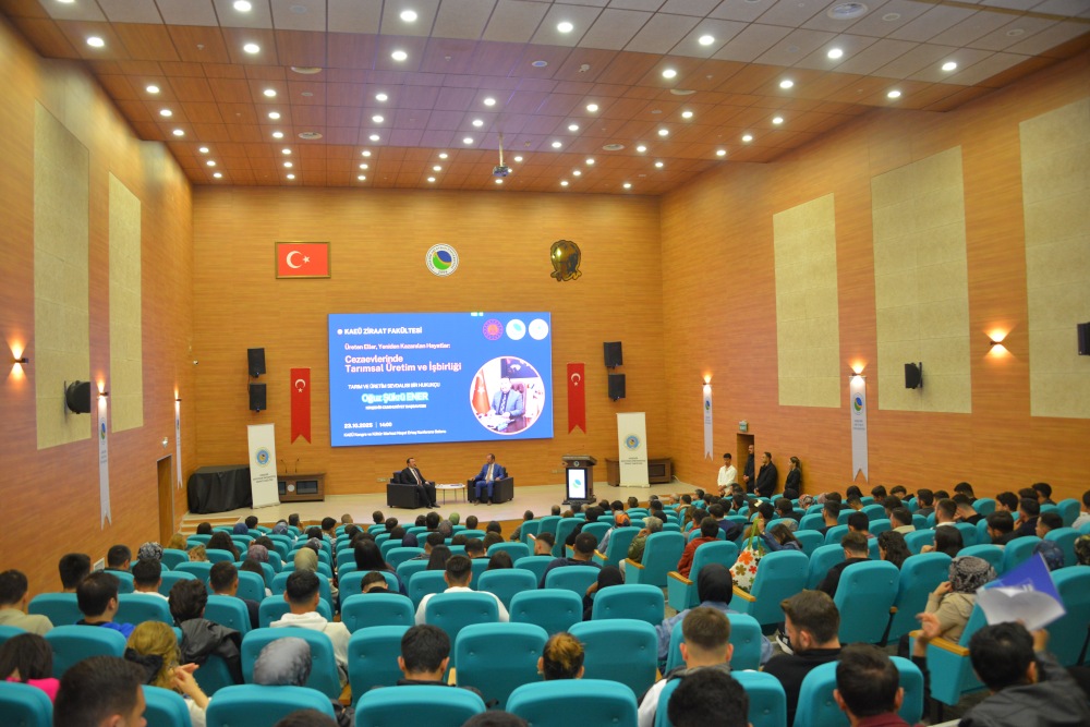 Kırşehir Ahi Evran Üniversitesi Ziraat Fakültesi ile Adalet Bakanlığı Kırşehir Cumhuriyet Başsavcılığı ortaklığında “Üreten Eller, Yeniden Kazanılan Hayatlar: Cezaevlerinde Tarımsal Üretim ve İş Birliği” konulu bir söyleşi düzenlendi. 23 Ekim 2025 tarihinde Ahi Evran Kongre ve Kültür Merkezi Neşet Ertaş Salonunda gerçekleşen söyleşiye Kırşehir Cumhuriyet Başsavcısı Oğuz Şükrü Ener, Rektör Yardımcısı Prof. Dr. Musa Özata, Ziraat Fakültesi Dekanı Prof. Dr. Selahattin Çınar, akademik ve idari personel ile öğrenciler katıldı.
