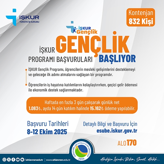 The “Bureaucracy Days with Youth” event was organized in collaboration with the Ministry of Youth and Sports, Kırşehir Ahi Evran University, and the Socializing Through Various Activities Student Club. Held on October 8, 2025, at the 15 July National Will Hall of the Ahi Evran Congress and Culture ...