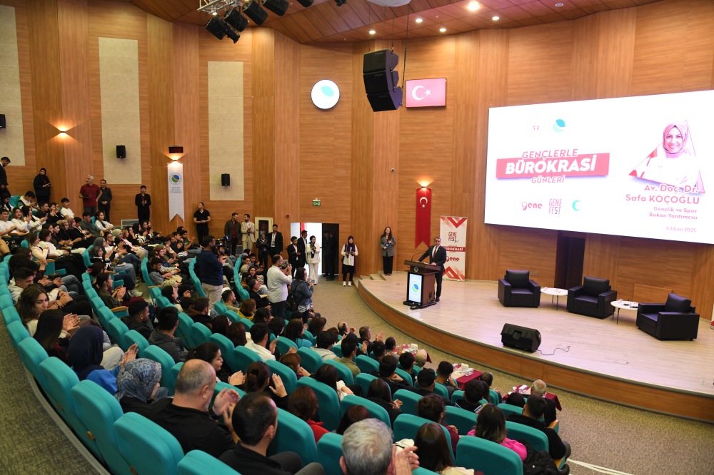 The “Bureaucracy Days with Youth” event was organized in collaboration with the Ministry of Youth and Sports, Kırşehir Ahi Evran University, and the Socializing Through Various Activities Student Club. Held on October 8, 2025, at the 15 July National Will Hall of the Ahi Evran Congress and Culture Center, the event was attended by Deputy Minister of Youth and Sports Assoc. Prof. Dr. Safa Koçoğlu, Rector Prof. Dr. Mustafa Kasım Karahocagil, Kırşehir Provincial Director of Youth and Sports Yasin Çakmakçı, Vice Rectors Prof. Dr. Musa Özata, Prof. Dr. Hüseyin Şimşek, Prof. Dr. Ali Güneş, along with academic and administrative staff and students.
