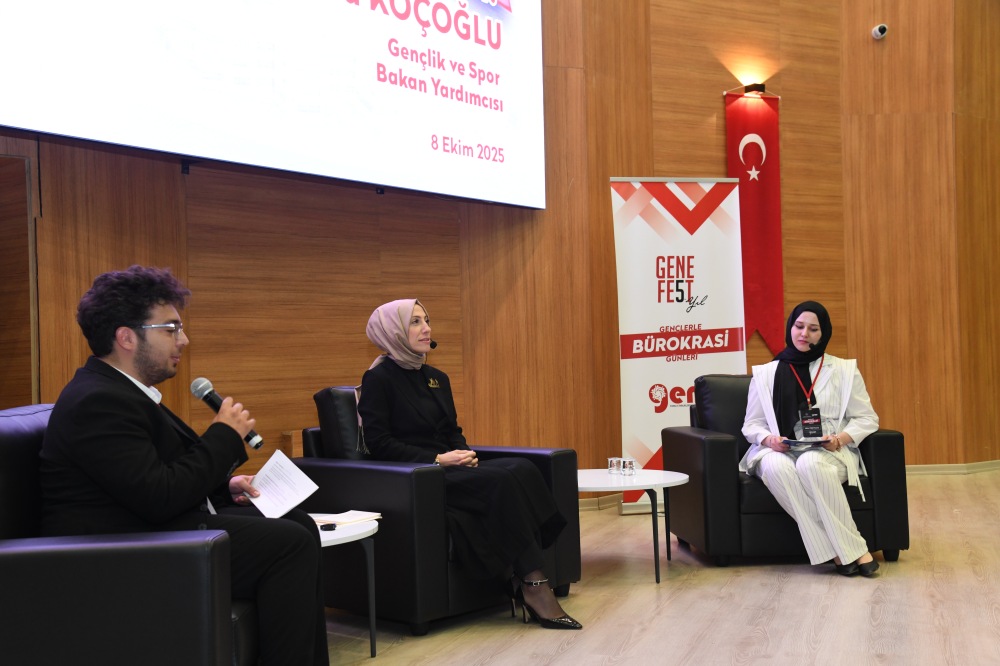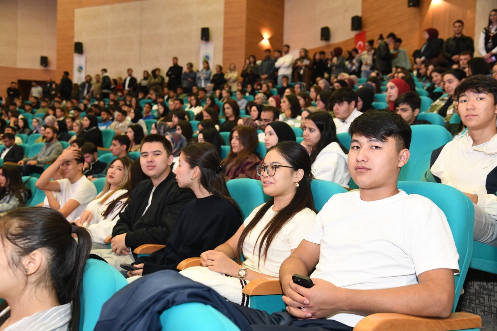 After Rector Prof. Dr. Mustafa Kasım Karahocagil’s speech, the session continued with a talk by Deputy Minister of Youth and Sports Assoc. Prof. Dr. Safa Koçoğlu. During her talk, Deputy Minister Koçoğlu discussed volunteer projects, sharing her experience in youth work and volunteer-driven activities over many years. She emphasized that personal development requires more than just academic success and pointed out the strong impact of social activities on student growth. Koçoğlu also shared insights about her own path to becoming Deputy Minister and encouraged young people, expressing confidence in their potential. “Those without ambition today cannot build tomorrow,” she said, offering valuable advice to the students throughout the session.