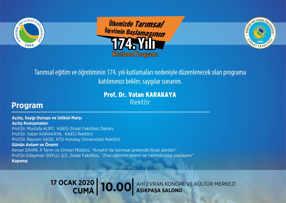 Ülkemizde Tarımsal Eğitim ve Öğretimin Başlamasının 174. Yılı Kutlaması