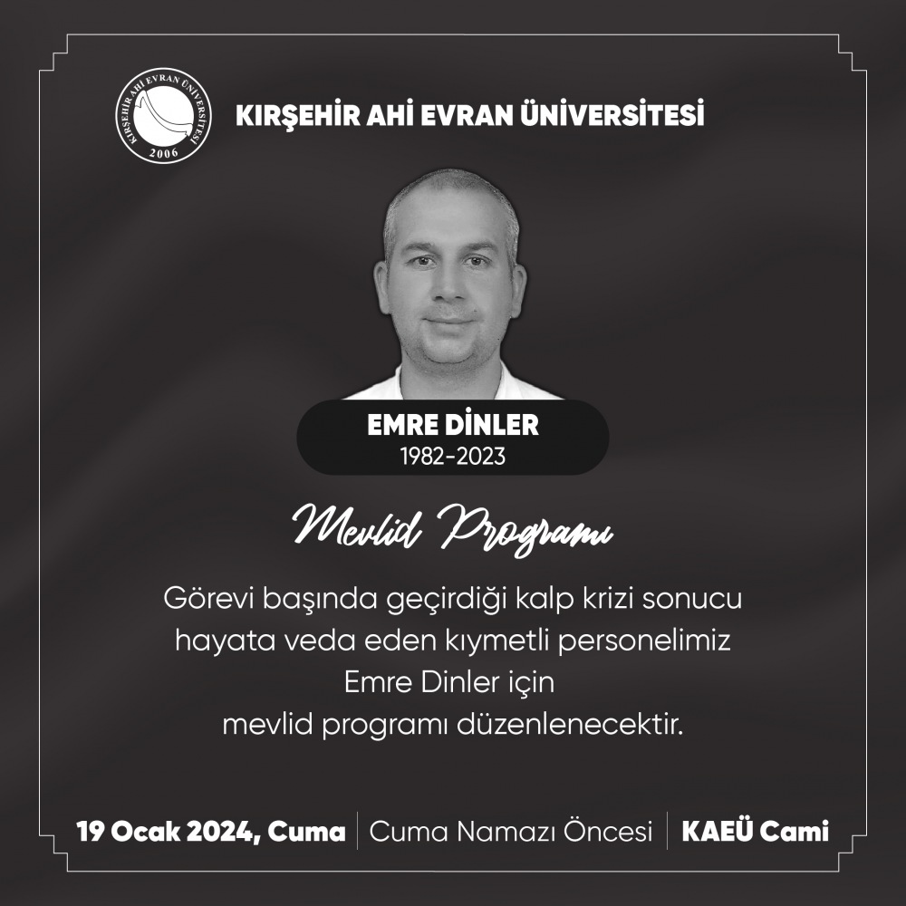 Kıymetli Personelimiz Emre Dinler İçin Mevlid Programı Düzenlenecektir