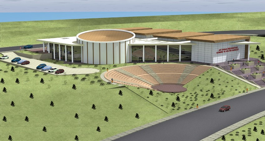 Üniversitemiz Rektörü Prof. Dr. Vatan Karakaya’nın yoğun gayretlerinin ardından hızla tamamlanmaya başlayan inşaatların ardından Ahi Evran Üniversitesi farklı bir çehreye kavuşacak. 9856 m2 inşaat alanına sahip olan Kongre ve Kültür Merkezinde 632 kişi oturma kapasiteli büyük bir konferans salonu bulunuyor. Ayrıca 260 kişi oturma kapasiteli orta büyüklükte iki ayrı konferans salonu, 81 kişi oturma kapasiteli iki ayrı küçük konferans salonuna sahip olan Kongre ve Kültür Merkezinde 81 ve 72 kişi kapasiteli 3 ayrı çalıştay salonu da mevcut. 4 ayrı sosyal etkinlik salonunu da bünyesinde bulunduran merkezde bir de VIP salon yer alıyor. Yüzde 67 oranında tamamlanan inşaatın kaba işlerinin bitmesinin ardından ince işler devam ediyor.