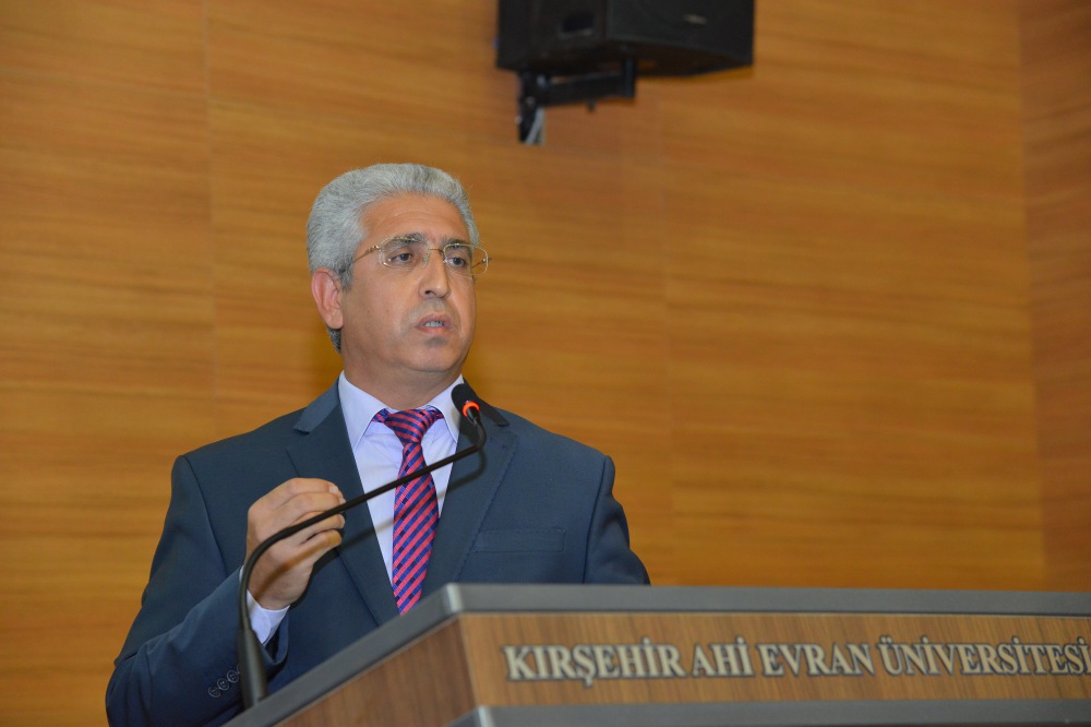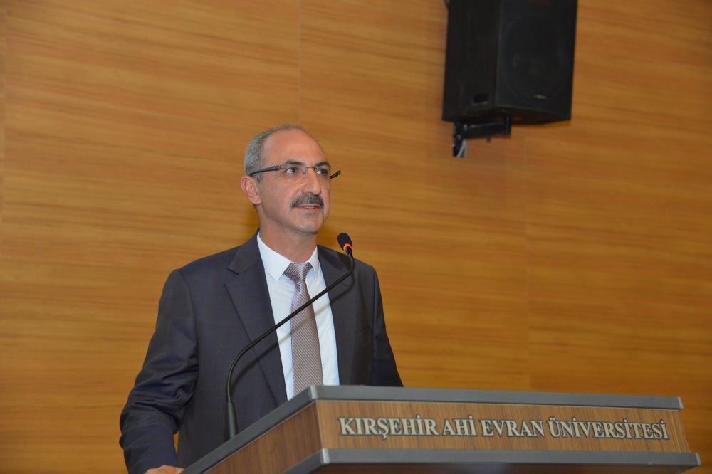 Eğitim Fakültesi Dekanı Prof. Dr. Refik Balay’ın konuşmasının ardından Rektör Karakaya söz aldı. Prof. Dr. Vatan Karakaya konuşmasında, 2015 yılında yakmış oldukları kalite meşalesini yerine ulaştırdıklarını söyleyerek şimdi ise yaklaşık iki yıl önce yeniden yaktıkları Eğitimde Kalite Güvencesi meşalesini yerine ulaştırma çabası içinde olduklarını vurguladı. Kalite çalışmasında gösterdikleri başarıyı AYDEP’te de göstermeyi amaçladıklarını belirten Rektör Karakaya, beşeri sermayenin en güçlü ürünü olan insan yetiştirme hazzının hiçbir yerde olmadığını kaydetti. “ İnsanı önemseyerek ve yetiştirmiş olarak yarınlara hazırlayacağız.” diyen Üniversitemiz Rektörü Prof. Dr. Vatan Karakaya, mevzularının gençler olduğunu ve onların yetişmişliklerinin ülkenin geleceği açısından oldukça önemli olduğunu anlattı. AYDEP ile Türkiye’ye yenilik getireceklerini, eğitim sistemimizin kendi problemini kendisinin özgün ve özgür bir şekilde tartışacağını vurgulayan Rektör Karakaya, “ Ahi Evran-ı Veli’den aldığımız isimle yükümlülüğümüzü yerine getirmeye çalışarak Ahiliğin 21. yüzyıl versiyonunu ortaya koyacağımıza inanıyorum.” dedi. Kalite Yönetim Sistemi Belgesinin üniversitemiz için birinci basamak olduğunu söyleyen Prof. Dr. Vatan Karakaya, çıktısı yeterliliğe dayalı olan AYDEP’in de ikinci basamak olduğunu kaydetti. “Projelerimizi, çocuklarımızı ilerde mutlu görmek için yapıyoruz.” diyen Rektör Karakaya, eğitimin insanın değişim noktası olduğunu ve insanın bilgi ile değiştirilebileceğini belirtti.