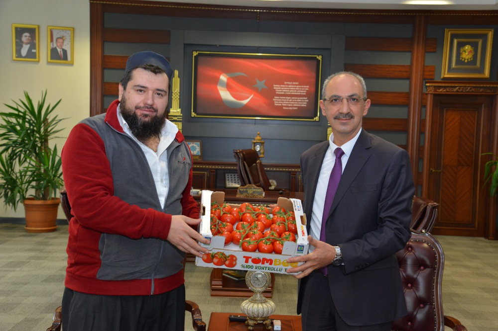Kırşehir Ahi Evran Üniversitesinin gelişimi için çalışmalarını aralıksız devam ettiren Rektör Karakaya’yı, Agronet Seracılık A.Ş Yönetim Kurulu Başkanı Serdar Eygün ziyaret ederek üretilen ilk ürünü hediye etti. Prof. Dr. Vatan Karakaya, Yükseköğretim Kurulunun (YÖK) Bölgesel Kalkınma Odaklı Misyon Farklılaşması ve İhtisaslaşması Projesi kapsamında tarım ve jeotermal alanda pilot üniversite olarak yaptıkları çalışmaların alanda hayat bulmasının kendilerini mutlu ettiğini belirtti. Amaçlarının bölgesel kalkınmaya destek vermek olduğunu dile getiren Rektör Karakaya, pilot proje çalışmalarının her proje için başarılı bir şekilde yürüdüğünü söyledi. Rektör Karakaya, Kırşehir Ahi Evran Üniversitesi olarak yapılacak her türlü yatırıma hem akademik hem de fiziki anlamda her türlü desteği vermeye hazır olduklarını tekrarlayarak yatırımcıları Kırşehir’e davet etti. Yapılan çalışmalardan duyduğu memnuniyeti dile getiren Rektör Karakaya, Agronet’i tebrik ederek başarılar diledi.