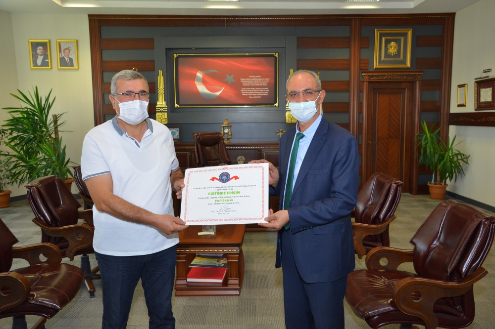 Yükseköğretim Kurulu (YÖK) tarafından 2018 yılında engelli bireylerin eğitim imkanlarına erişimleri, mekanlara erişiminde kolaylık, sosyo-kültürel faaliyetlere erişim olanağı sağlanması ve farkındalık oluşturulması için düzenlenen “2020 Yılı Engelsiz Üniversite Ödülleri” kapsamında Kırşehir Ahi Evran Üniversitesinin belirli birimleri Turuncu ve Yeşil Bayrak Ödülünü almaya hak kazandı. 2 Eylül 2020 tarihinde Üniversitemiz Rektörü Prof. Dr. Vatan Karakaya, rektörlük makamında Turuncu ve Yeşil Bayrak Ödülünü almaya hak kazanan Çiçekdağı, Kaman, Mucur ve Teknik Bilimler Meslek Yüksekokulları yöneticileri ile bir araya gelerek onlara belgelerini verdi.
