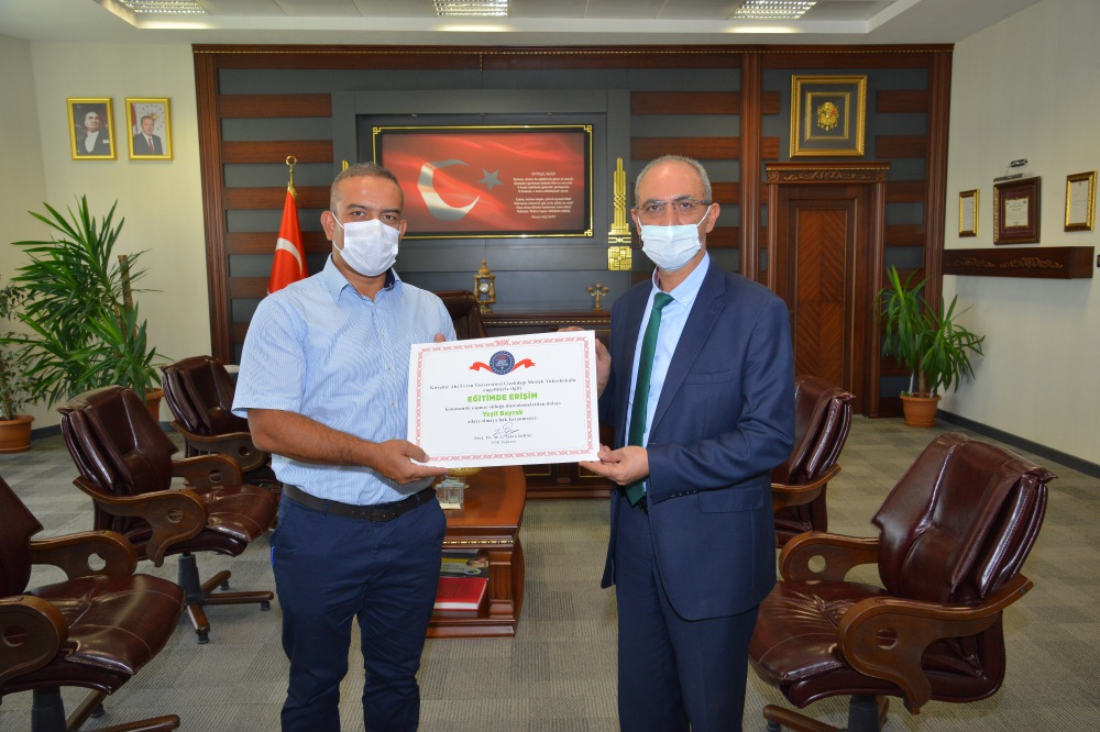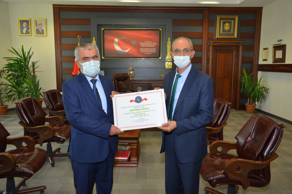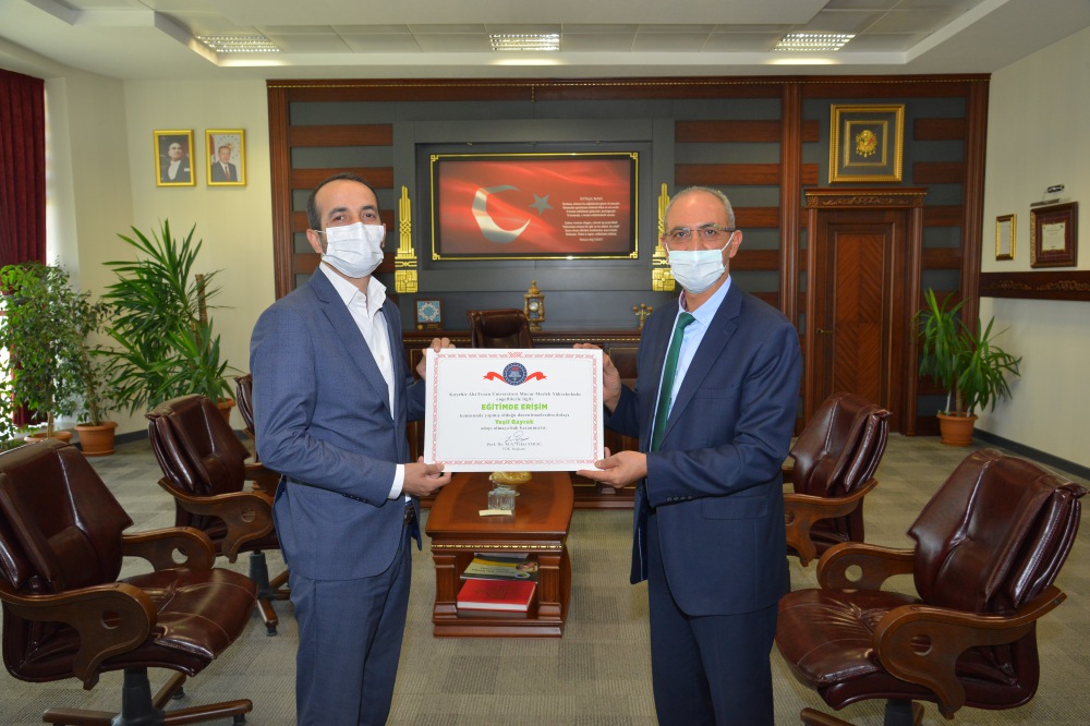 Eğitimde erişebilirliği önemli ölçüde sağlayan üniversitemiz, Merkez (Bağbaşı) Yerleşkesinin hizmet verilen tüm alanlarına engelli bireylerin rahatça ulaşabilmesi amacıyla yaptığı düzenlemeler ve çalışmalar sonucunda “Mekanda Erişebilirlik” özelliği ile Turuncu Bayrak ödülü aldı. Engelli bireylerin de yerleşke içerisinde herhangi bir engele maruz kalmadan tüm aktivitelerini gerçekleştirebilmeleri, sosyo-kültürel faaliyetlere engelsiz erişebilmeleri için gerekli düzenlemelerin yapılmasının ardından almaya hak kazanılan Turuncu Bayrak ve “Mekanda Erişebilirlik” belgesi Üniversitemiz Rektörü Prof. Dr. Vatan Karakaya tarafından Genel Sekreter Mehmet Zeki Küçük’e verdi.