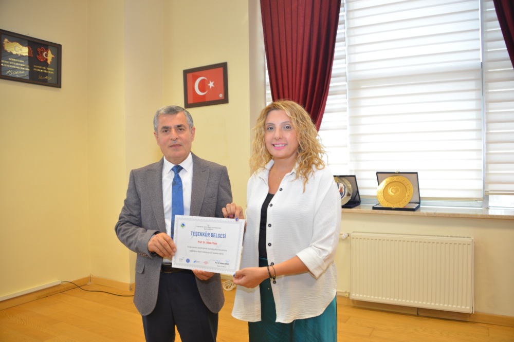Toplantının sonunda Prof. Dr. Hüseyin Şimşek, sürece aktif katkı sağlayan Müfredat Destek Ofisi üyelerine teşekkür ederek, katılımcılara Teşekkür Belgeleri takdim etti.