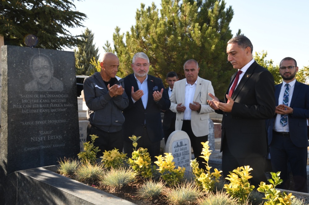 Makam ziyaretinin ardından Prof. Dr. Mustafa Kasım Karahocagil ile birlikte Başkan Aşgın ve beraberindekiler, Darbukacı Gökhan’ın hayalini gerçekleştirmek için Neşet Ertaş’ın mezarını ziyaret ettiler. Kabrinde Neşet Ertaş’a dualar eden Darbukacı Gökhan, kendisinin isteğini geri çevirmeyip buraya getiren Çorum Belediye Başkanı Dr. Halil İbrahim Aşgın ile kendisini kabir ziyaretinde yalnız bırakmayan Üniversitemiz Rektörü Prof. Dr. Mustafa Kasım Karahocagil’e teşekkür etti.