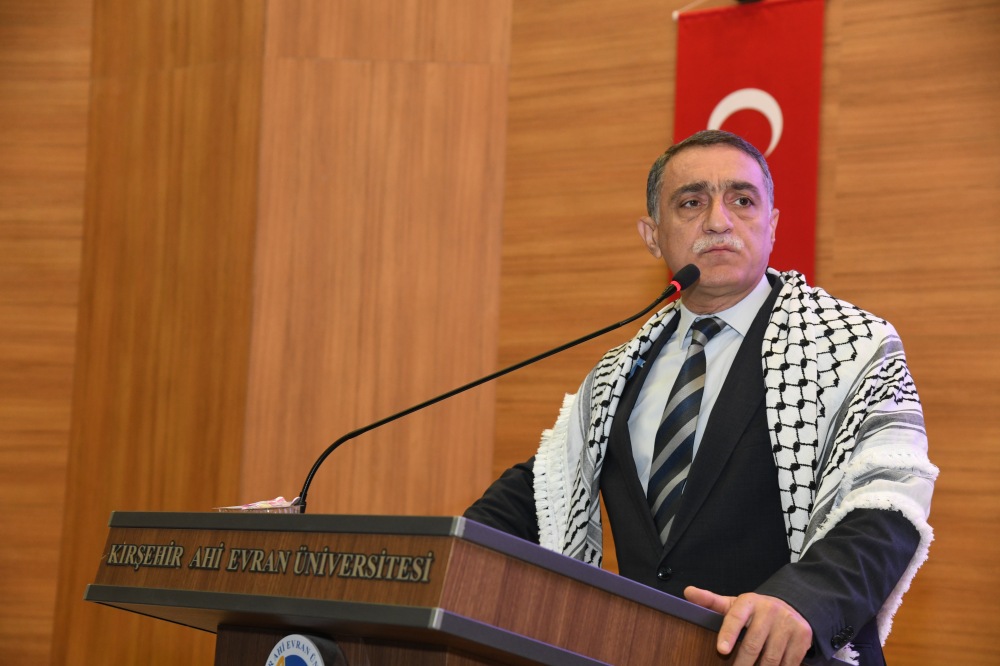 Kırşehir Ahi Evran Üniversitesi 2025-2026 Akademik Yılına anlamlı bir etkinlik ile başladı. Kırşehir Ahi Evran Üniversitesi Rektörlüğü tarafından “İlk Dersim Filistin” isimli bir etkinlik gerçekleştirildi. 25 Eylül 2025 tarihinde Ahi Evran Kongre ve Kültür Merkezi 15 Temmuz Milli İrade Salonunda gerçekleştirilen etkinliğe Üniversitemiz Rektörü Prof. Dr. Mustafa Kasım Karahocagil, Rektör Yardımcıları Prof. Dr. Musa Özata, Prof. Dr. Hüseyin Şimşek ve Prof. Dr. Ali Güneş, akademik ve idari personel ile öğrenciler katıldı.