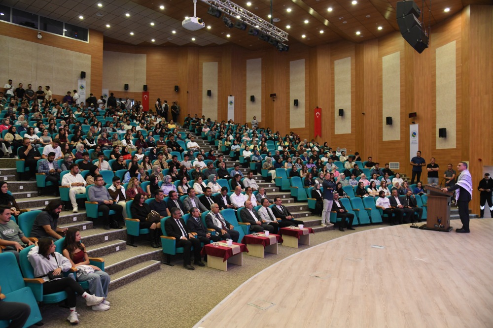 Konuşmasının devamında Gazze’de şehit düşen Üniversitemiz Mühendislik Mimarlık Fakültesi Elektrik-Elektronik Mühendisliği birinci sınıf öğrencisi Majd Ali’yi de anan Rektör Karahocagil, Majd Ali’nin Gazze ablukasını delemediği için Filistin’de kaldığını, ailesi ve komşuları için gıda ürünleri ararken Katil İsrail tarafından şehit düşürüldüğünü sözlerine ekledi. “Bizim şehit bir öğrencimiz var, bu eğitim öğretim yılına bu farkındalıkla başlamamız gerekiyor.” diyen Prof. Dr. Mustafa Kasım Karahocagil, bu farkındalığı yüksek tutmalarını ve boykot eylemine de her zamankinden daha çok destek vermeleri gerektiğini sözlerine ekledi.