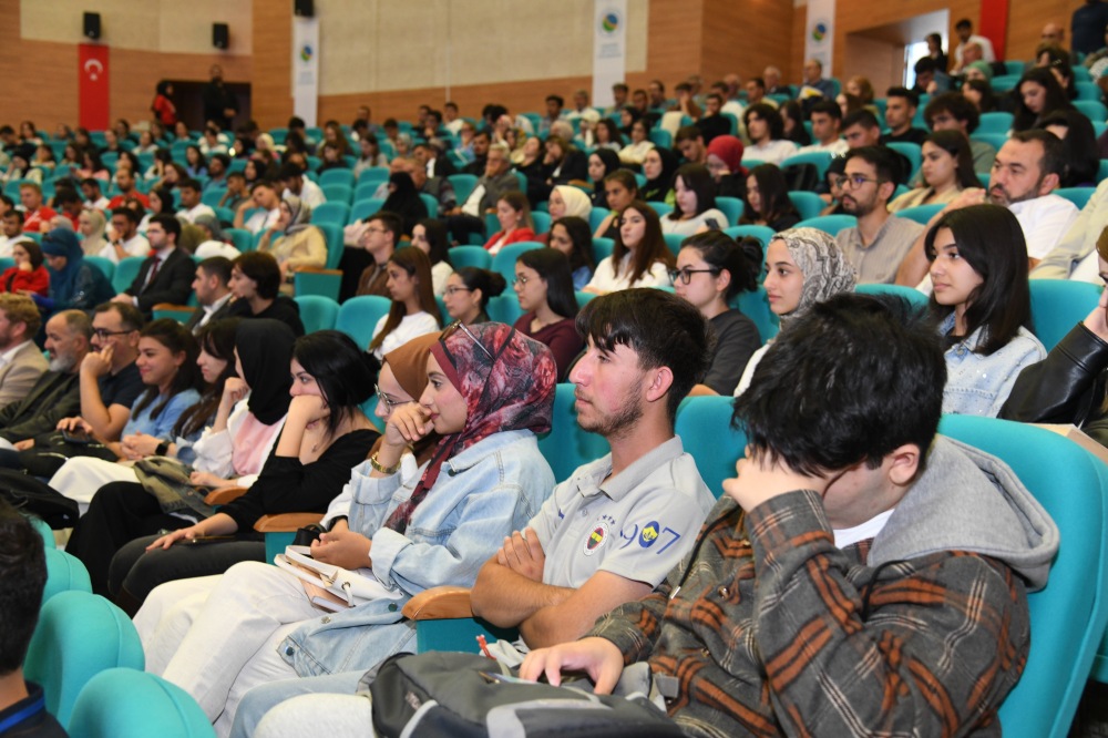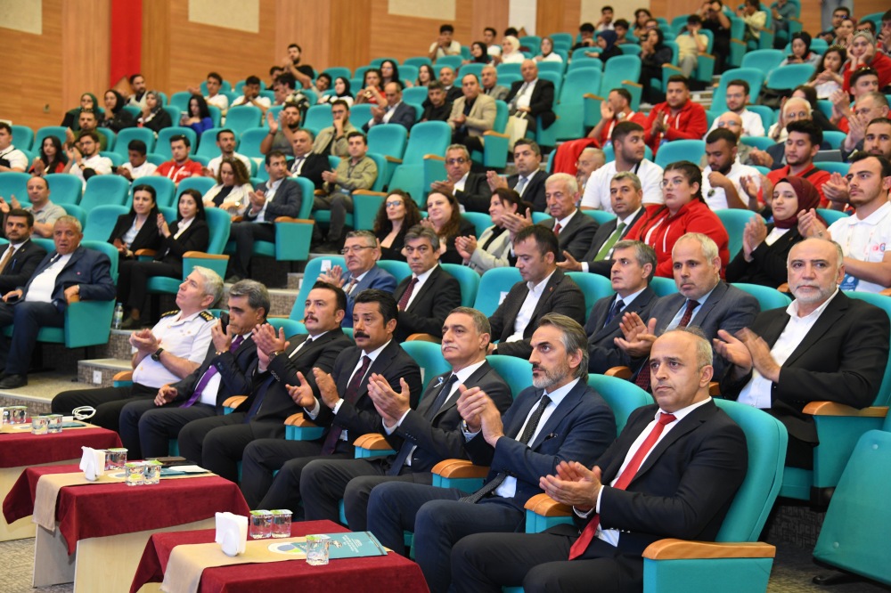 Daha sonra Üniversitemiz Rektörü Prof. Dr. Mustafa Kasım Karahocagil söz alarak, konuşmasının başında geçtiğimiz gün kaybettiğimiz Üniversitemiz Fen Edebiyat Fakültesi Tarih Bölüm Başkanı Prof. Dr. Hasan Karaköse ile İsrail’in Gazze saldırılarında ailesine gıda malzemeleri ararken şehit düşürülen Mühendislik Mimarlık Fakültesi Elektrik-Elektronik Mühendisliği Bölümü birinci sınıf öğrencimiz Majd Ali'yi rahmetle andı. Gazze'de iki yıldır insanlık dışı katliamlar yapan İsrail terör devletini lanetleyen Rektör Karahocagil, “Her bir öğrencimizi ve her bir vatan evladını; sebepsiz yere katledilen binlerce masum ve mazlum hürmetine, Majd Ali'ler, Hind Recep'ler hürmetine Siyonist katillere destek veren firmaların ürünlerini ilelebet boykot etmeye davet ediyorum.” dedi.