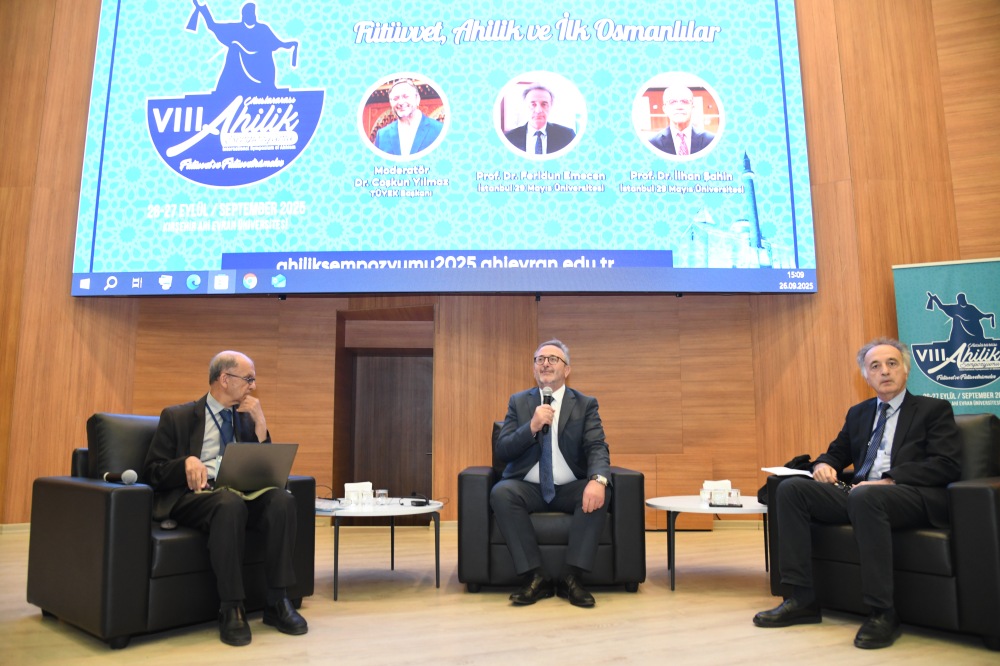 Ticaret Bakanlığı ile Kırşehir Valiliği himayelerinde ve Kırşehir Ahi Evran Üniversitesi ev sahipliğinde bu yıl sekizincisi düzenlenen “Fütüvvet ve Fütüvvetnameler” konulu Uluslararası Ahilik Sempozyumu başladı. 26 Eylül 2025 tarihinde Ahi Evran Üniversitesi Ahi Evran Kongre ve Kültür Merkezi 15 Temmuz Milli İrade Salonunda açılışı gerçekleştirilen sempozyuma Kırşehir Valisi Murat Sefa Demiryürek, Kırşehir Cumhuriyet Başsavcısı Oğuz Şükrü Ener, Üniversitemiz Rektörü Prof. Dr. Mustafa Kasım Karahocagil, Ticaret Bakanlığı Esnaf, Sanatkârlar ve Kooperatifçilik Genel Müdürü Taha Enes Şener, Vali Yardımcısı İsmail Çetinkaya, Kırşehir İl Jandarma Komutanı J. Alb. Ahmet Yıldırım, Kırşehir İl Emniyet Müdürü Mesut Görücü, Rektör Yardımcıları Prof. Musa Özata, Prof. Dr. Ali Güneş ve Prof. Dr. Hüseyin Şimşek, Genel Sekreter Dr. Öğr. Üyesi Hüseyin İlter, ilimiz yöneticileri, kurum temsilcileri, akademik ve idari personel ile öğrenciler katıldı.