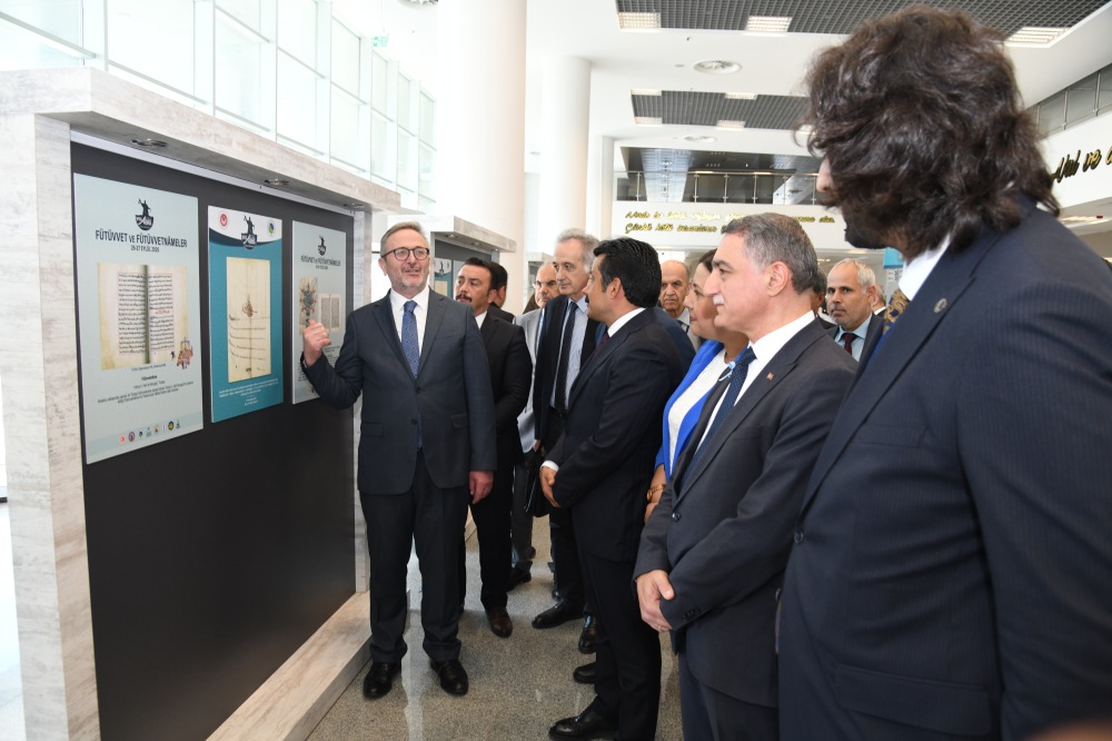 VIII. Uluslararası Ahilik Sempozyumunun bir diğer dikkat çeken tarafına da vurgu yapan Üniversitemiz Rektörü Prof. Dr. Mustafa Kasım Karahocagil, sempozyumun Ahilik ve Fütüvvet Kültürünün orijinal belgelerini gün yüzüne çıkaran üç ayrı sergiye ev sahipliği yaptığını anlattı. Aynı zamanda bu yıl Türk İşbirliği Koordinasyon Ajansının (TİKA) desteği ile 13 ülkeden 18 uluslararası iş insanına üç günlük Ahilik Temelli Girişimcilik Eğitimi verildiğini belirten Rektör Karahocagil, eğitim alan kursiyerlerin Ahilik değerlerini gönül coğrafyalarında tanıtmalarında önemli katkılar sunacağına inandığını kaydederek konuşmasına şöyle devam etti: “Bu sebeple TİKA, Yurtdışı Türkler ve Akraba Topluluklar Başkanlığı (YTB), Yunus Emre Enstitüsü ve Maarif Vakfı ile yaptığımız görüşmelerde Ahiliğin bu kurumlarımız aracılığı ile uluslararası tanıtımına katkı sağlayacak yeni projeler geliştirmeye devam edeceğiz.”