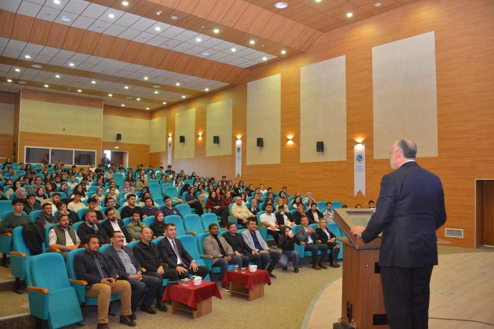 Konferansın devamında söz alan Rektör Yardımcısı Prof. Dr. Musa Özata, yapay zekânın günümüzde vazgeçilmez bir araç olmaya doğru ilerlediğini söyleyerek bu teknolojinin öğrencilerimiz tarafında iyi anlaşılıp, öğrenilmesi gerektiğini belirtti. Prof. Dr. Musa Özata günümüzde bilginin en önemli güç olduğunu, bilgiyi yakalamak için çağın gereksinimlerine uygun teolojilerin kullanılmasının doğru olacağını belirterek bu konferansın düzenlenmesinde emeği geçen herkese teşekkür etti.