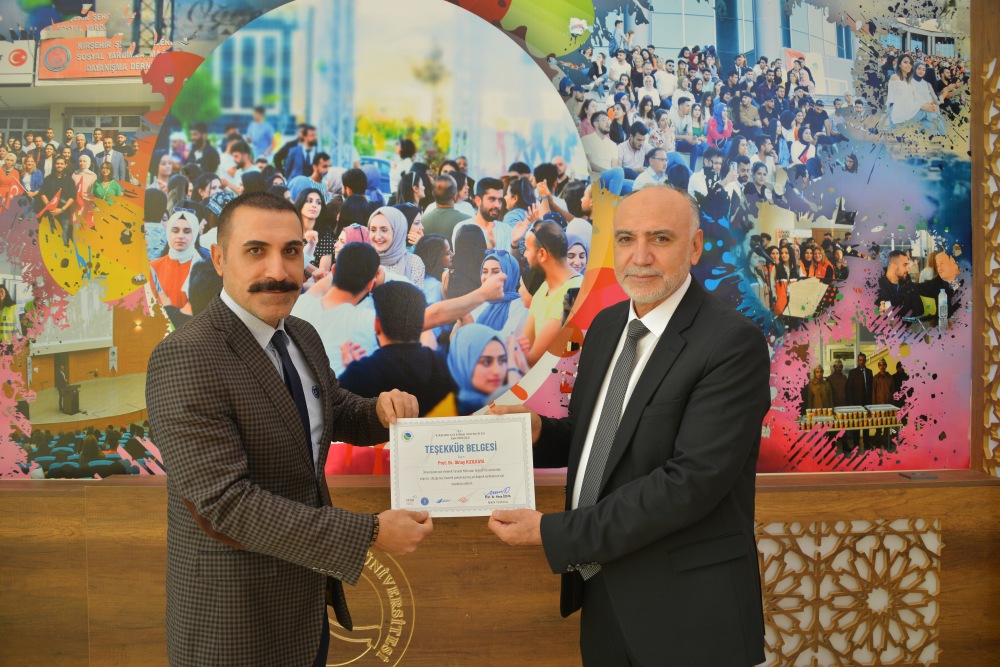 Sürece Bölüm Başkanları, Öğretim Elemanları, Öğrenci İşleri Daire Başkanlığı personeli ve Eğitim Komisyonu üyeleri aktif olarak katıldı. Ders içerikleri güncellenerek dijital yeterlilik, yapay zeka, sürdürülebilirlik, kariyer planlama, etik değerler ve girişimcilik temaları müfredata entegre edildi. Müfredat güncelleme sürecine katkılarından dolayı Eğitim Komisyonu üyeleri ve Öğrenci İşleri Daire Başkanlığı personeline Rektör Yardımcısı Prof. Dr. Musa Özata tarafından teşekkür belgeleri takdim edildi. Özata, “Bu süreç, öğrencilerimizi çağın gerektirdiği bilgi, beceri ve yetkinliklerle donatmayı hedefleyen kapsamlı bir dönüşümün parçasıdır.” dedi.