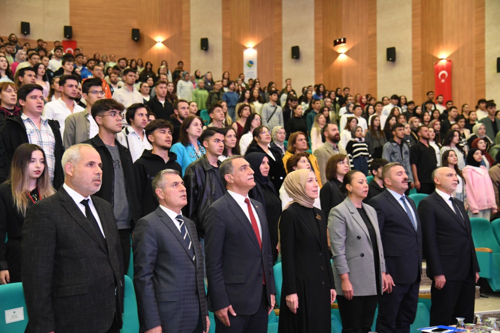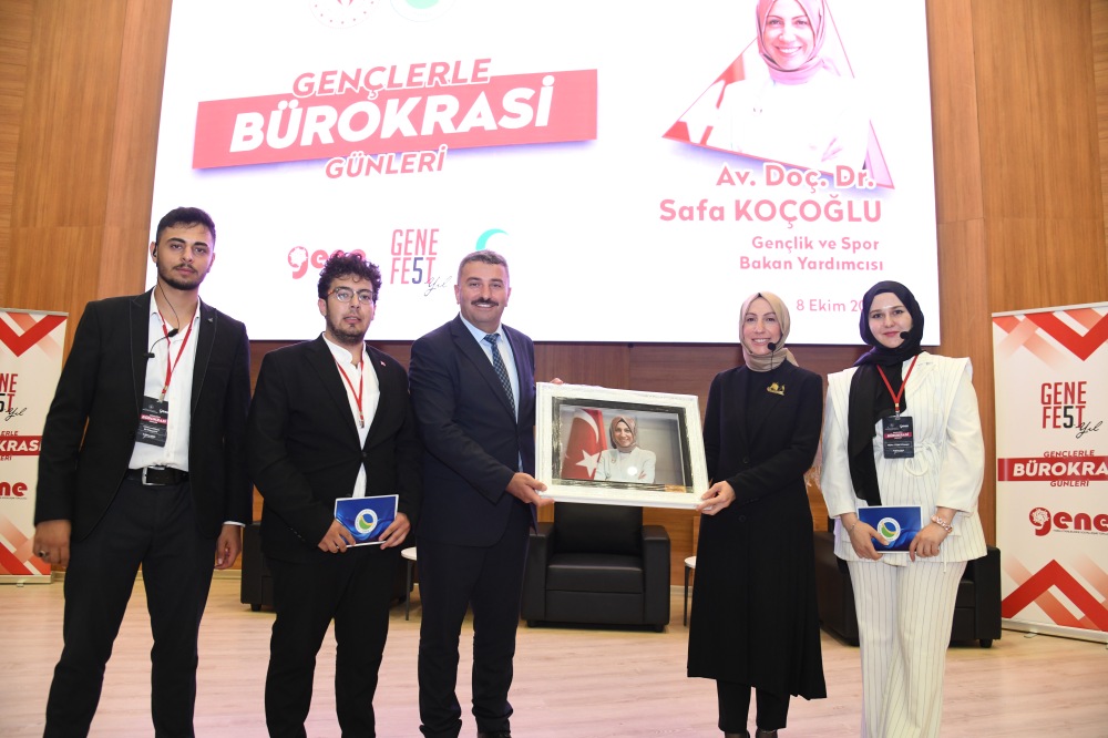 At the end of the session, Rector Prof. Dr. Mustafa Kasım Karahocagil and Provincial Youth and Sports Director Yasin Çakmakçı presented a gift to Deputy Minister of Youth and Sports Assoc. Prof. Dr. Safa Koçoğlu. The event concluded after a group photo was taken with the students.