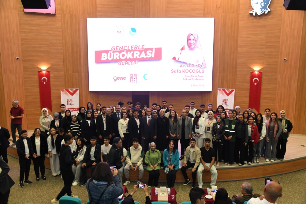 The “Bureaucracy Days with Youth” event was organized in collaboration with the Ministry of Youth and Sports, Kırşehir Ahi Evran University, and the Socializing Through Various Activities Student Club. Held on October 8, 2025, at the 15 July National Will Hall of the Ahi Evran Congress and Culture Center, the event was attended by Deputy Minister of Youth and Sports Assoc. Prof. Dr. Safa Koçoğlu, Rector Prof. Dr. Mustafa Kasım Karahocagil, Kırşehir Provincial Director of Youth and Sports Yasin Çakmakçı, Vice Rectors Prof. Dr. Musa Özata, Prof. Dr. Hüseyin Şimşek, Prof. Dr. Ali Güneş, along with academic and administrative staff and students.